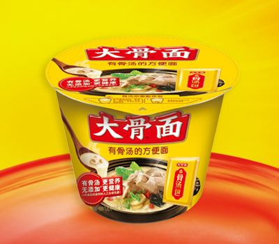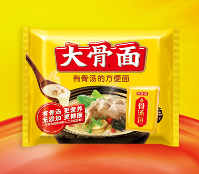 “有骨湯的方便面”——“大骨面”精選上等棒骨,6小時文火熬制,3段工藝提取骨湯精華,湯鮮味美;