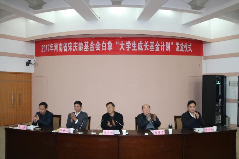 “2017年是白象大學(xué)生成長(zhǎng)基金設(shè)立以來(lái)的第二個(gè)十年,也是一個(gè)新的開(kāi)端,在白象捐贈(zèng)的專項(xiàng)基金1000萬(wàn)元的基礎(chǔ)上,白象大學(xué)生成長(zhǎng)基金真正實(shí)現(xiàn)了可持續(xù)發(fā)展。今年,白象大學(xué)生成長(zhǎng)基金使用增值部分,對(duì)河南農(nóng)業(yè)大學(xué)100名新生,鄭州師范學(xué)院30名新生,共計(jì)130名學(xué)子進(jìn)行了資助。”河南省宋慶齡基金會(huì)會(huì)領(lǐng)導(dǎo)在講話中說(shuō)道:“不僅如此,2018年上半年,我們還計(jì)劃再次啟動(dòng)白象大學(xué)生創(chuàng)業(yè)項(xiàng)目,支持大學(xué)生自主創(chuàng)業(yè)。
